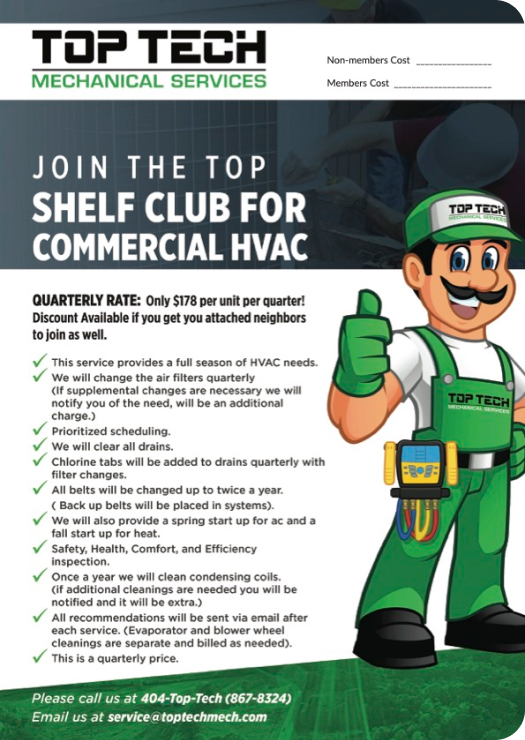 Join the Top Shelf Club today and enjoy stress-free comfort, year-round savings, and the confidence that your system is always in expert hands.