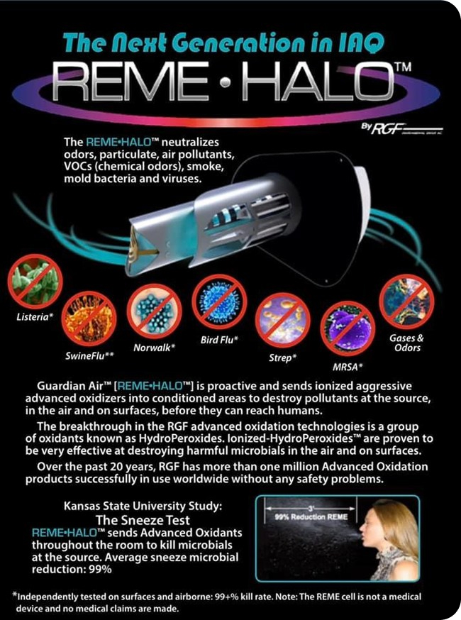 What it does: Uses bipolar ionization or needlepoint ionization to neutralize airborne particles, VOCs (volatile organic compounds), bacteria, viruses, and mold spores.